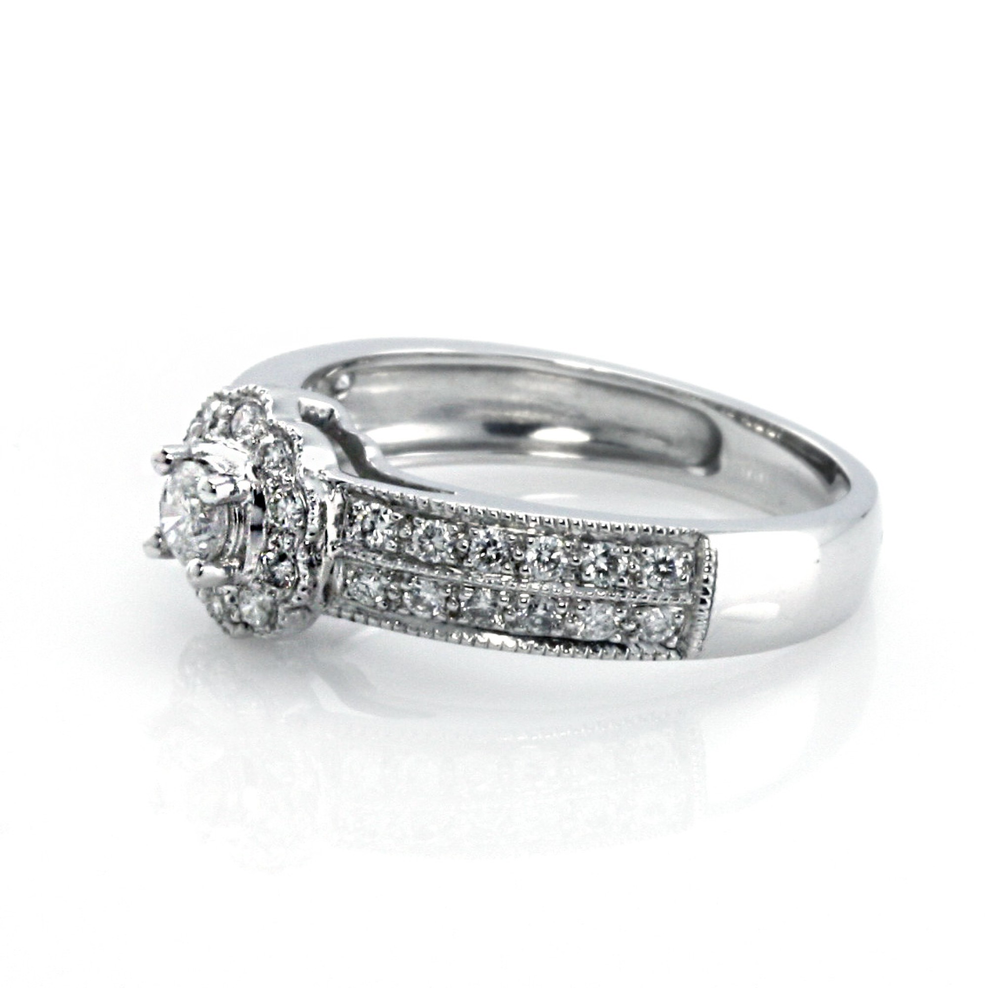 0.50 Cts Round Cut Halo Diamond Engagement Ring Set in 14K White Gold